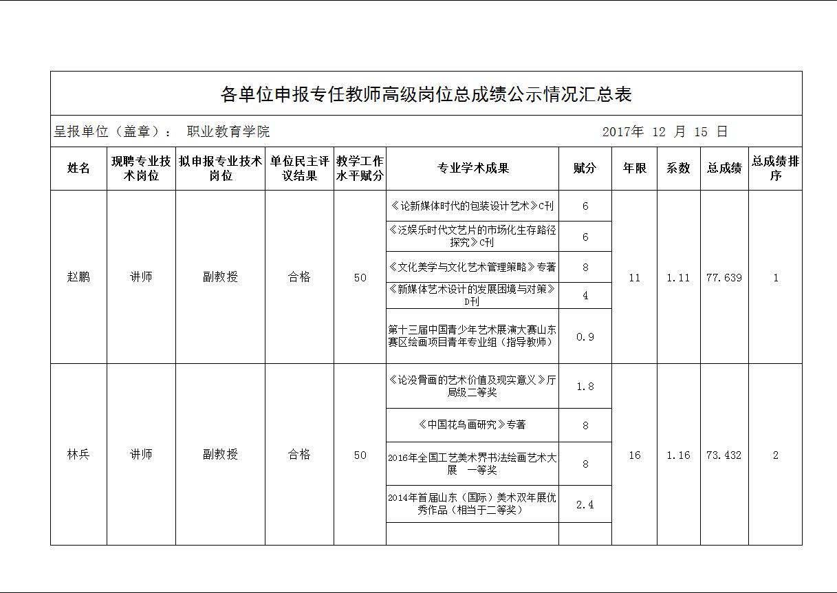 职业教育学院高级职称公示